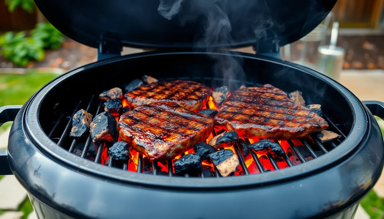 Charcoal grills provide a distinct smoky flavor that enhances ribeye’s natural taste. They reach high temperatures quickly, making them suitable for searing.